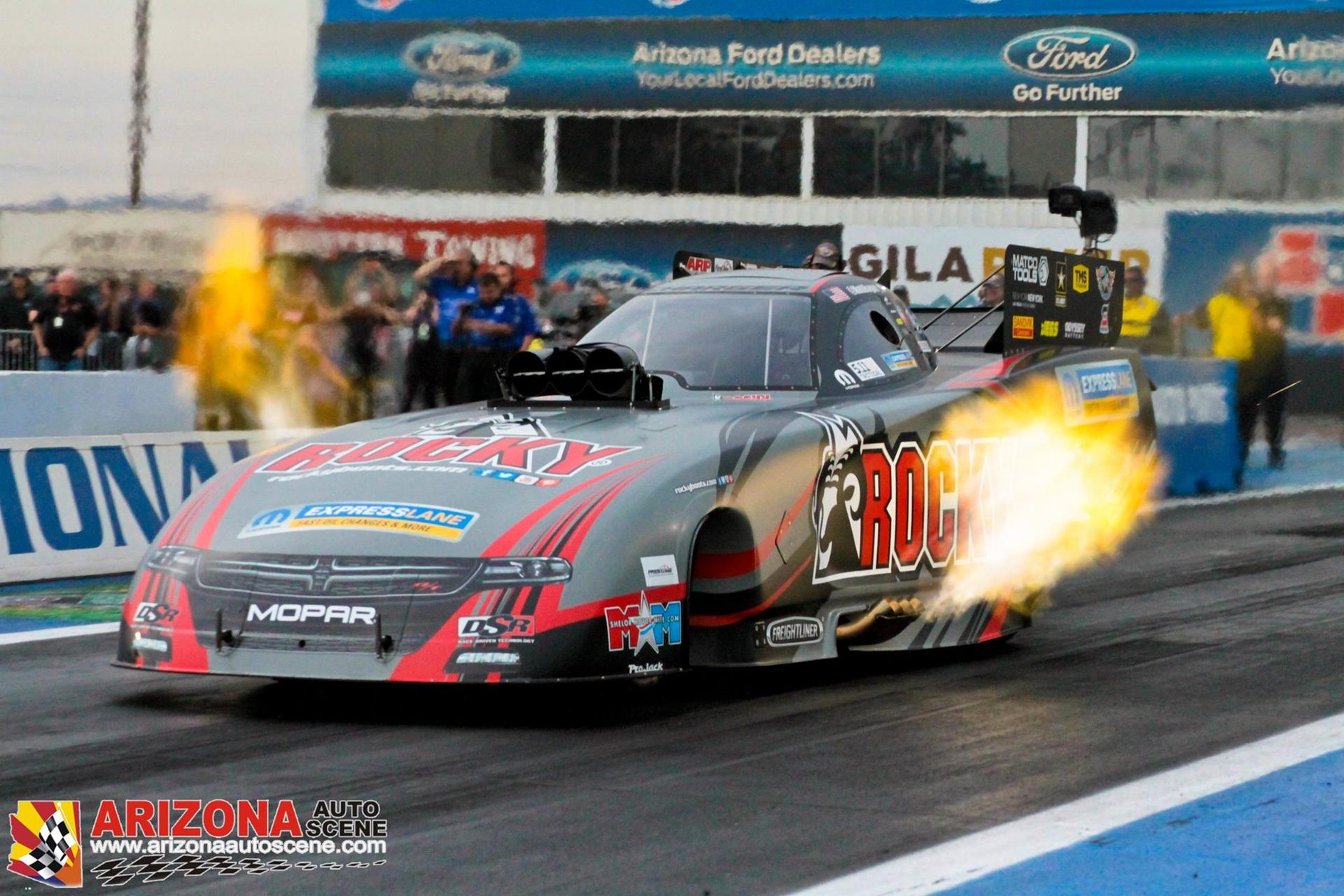 hanks to an outpouring of nominations, Army veteran Denny was selected for an incredible NHRA race weekend along with his sweet wife Suzy. He stood at the starting line in the San Tan Ford suite, enjoyed the thrill of a hot rod convertible for the weekend, relaxed with lodging at Wild Horse Pass Resort, and was treated to generous gift cards donated by Marjerle’s.